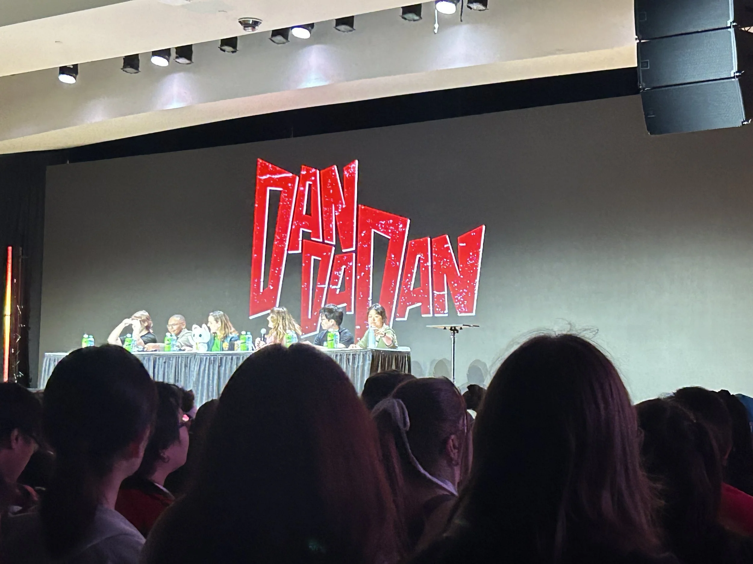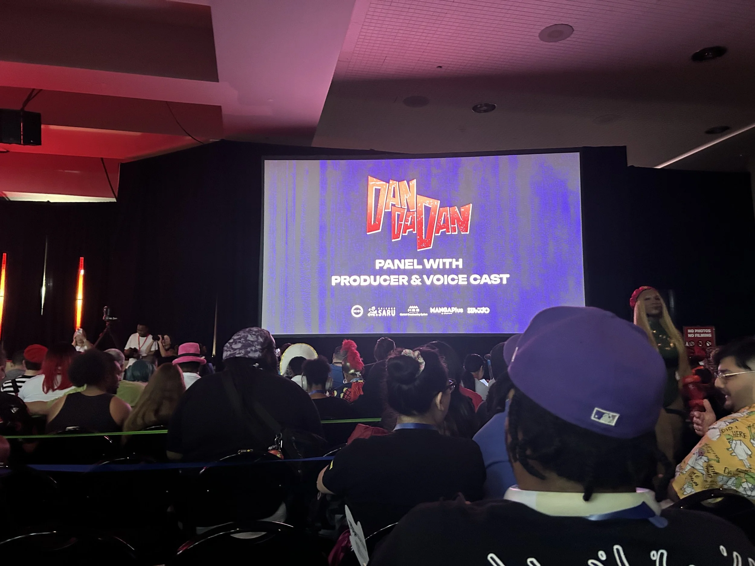 After the Behind-the-Scenes, the panelists participated in two activities for the audience’s enjoyment. The first was a game called “What’s in the Box?” where the English VAs for Dandadan had to stick their hands in a box (the contents of which the audience could see) and guess what was inside. The next was a live, on-stage dubbing of a scene from Dandadan season two. These activities were really fun to see, and made attending the panel feel worth it – so much of these panels can be relayed in news articles like these after the fact, making attending them seem pointless, but these two things could really only be enjoyed at the panel itself, and that made the experience feel worth it.