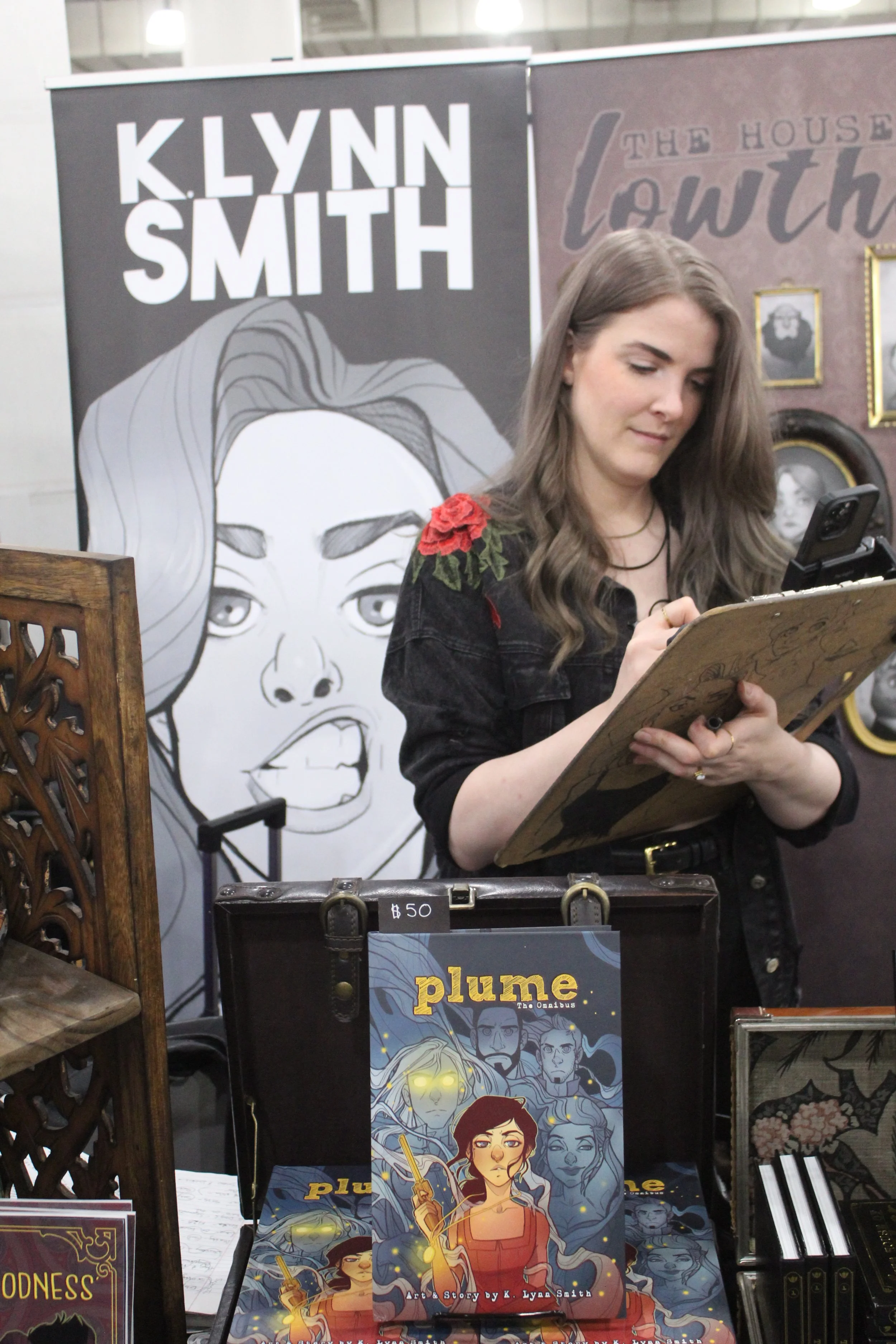 An award-winning artist (Michigan Press Award and the Victoria Hayes Storyboarding Award) and writer from Michigan, K. Lynn Smith is known for her independent works that are imaginative, engaging, and blend humor, adventure, and emotion. Her standalone series, PLUME, is a testament to her world-building, magic, and art style.